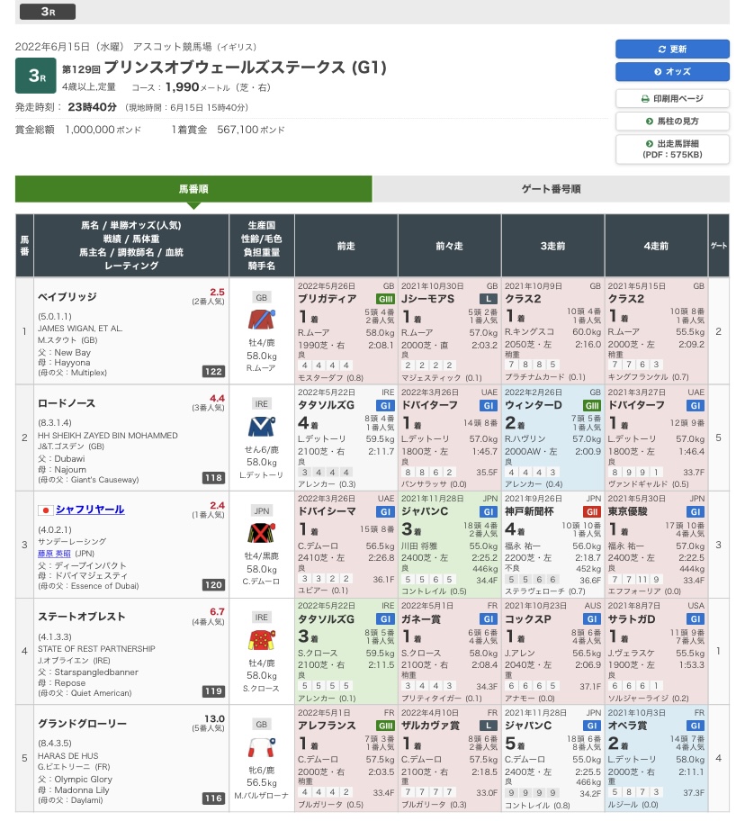 日本のオッズではシャフ様とベイブリッジが人気を争っていますが現地では余裕でベイブリッジが一番人気なんすよね…
